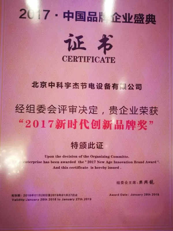 ? ? ? 近幾年,中科宇杰在郝澤忠先生的帶領下,秉承不斷的技術創新,穩定的產品品質,良好的售后服務,誠實的公司信譽,引領節能行業潮流。公司立足于長遠發展,在建立現代企業制度的基礎上,建立了一套完善的人事管理、生產管理、質量管理、財務管理、營銷管理、等綜合管理體系。曾先后獲得“2016年度中國好技術”獎項和“2017年國家高新技術企業”等認定。