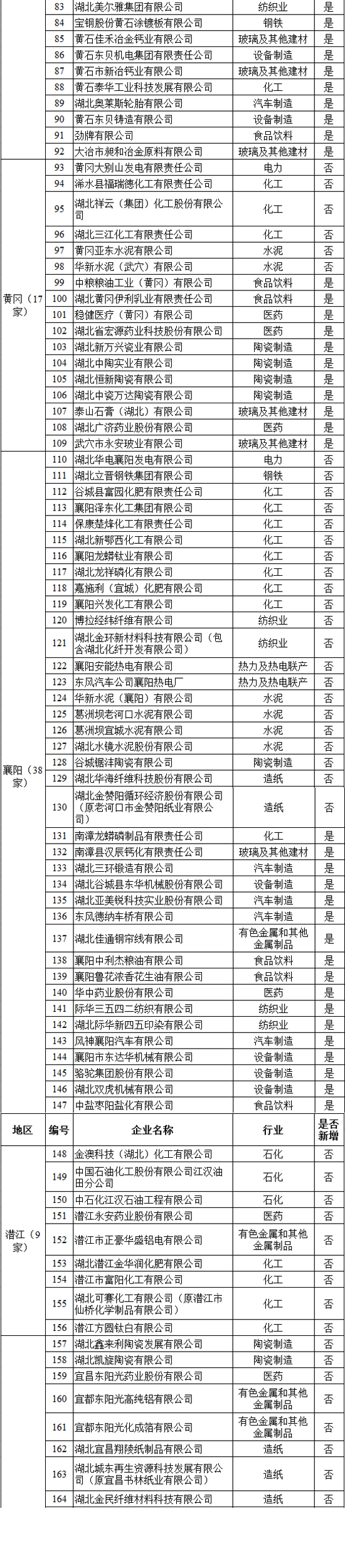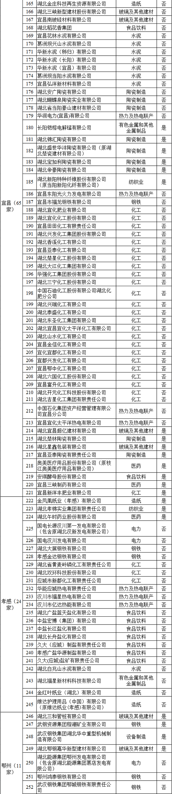 湖北省2017年納入碳排放配額管理企業(yè)清單
