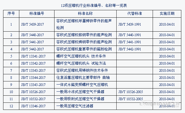 2017年第48號中華人民共和國工業(yè)和信息化部公告,工業(yè)和信息化部批準發(fā)布了壓縮機行業(yè)標準12項看具體內容見下表。