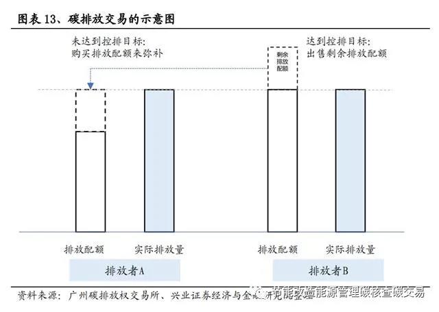 碳交易市場是由政府通過對能耗企業的控制排放而人為制造的市場。通常情況下,政府確定一個碳排放總額,并根據一定規則將碳排放配額分配至企業。如果未來企業排放高于配額,需要到市場上購買配額。與此同時,部分企業通過采用節能減排技術,最終碳排放低于其獲得的配額,則可以通過碳交易市場出售多余配額。雙方一般通過碳排放交易所進行交易。