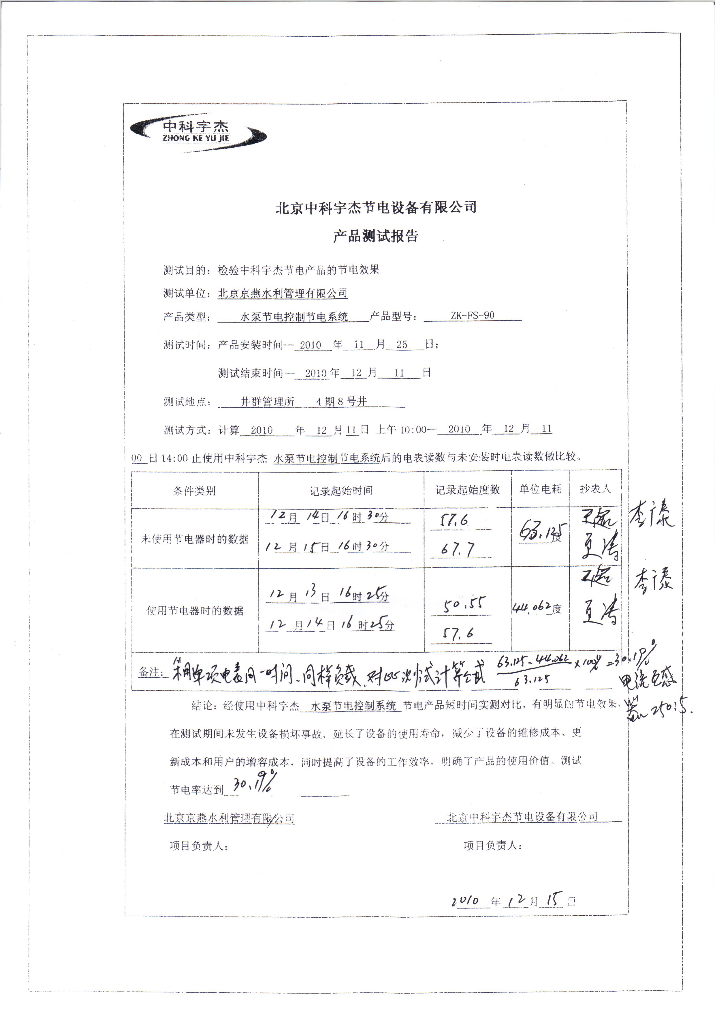經(jīng)安裝調(diào)試驗(yàn)收,節(jié)能效率達(dá)到30%,投資回報(bào)期6個(gè)月,按質(zhì)保十年計(jì)算,此項(xiàng)節(jié)能工程能為北京京燕水利管理有限公司帶來(lái)380萬(wàn)人民幣以上的直接效益。