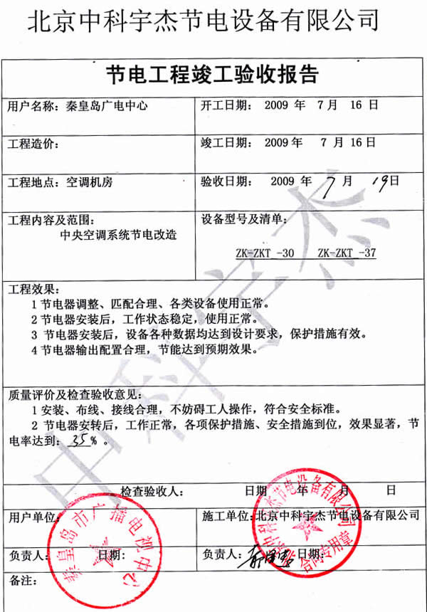 安裝調(diào)試驗收,節(jié)能效率達到35%,節(jié)能效果非常明顯,投資回報期不到兩年,為秦皇島市廣播電視局得到了很好的經(jīng)濟效益和社會效益。